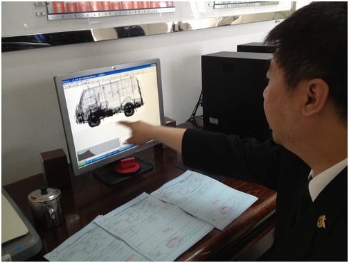 很快嫌疑車輛的掃描圖便呈現(xiàn)在了綠通快檢系統(tǒng)的客戶端上。查驗(yàn)關(guān)員發(fā)現(xiàn),該車其他部位圖像顯示都正常,只有輪胎部位顯示的是重重的黑影,而正常輪胎成像應(yīng)是白色。關(guān)員由此判斷,貓膩就出在輪胎里。